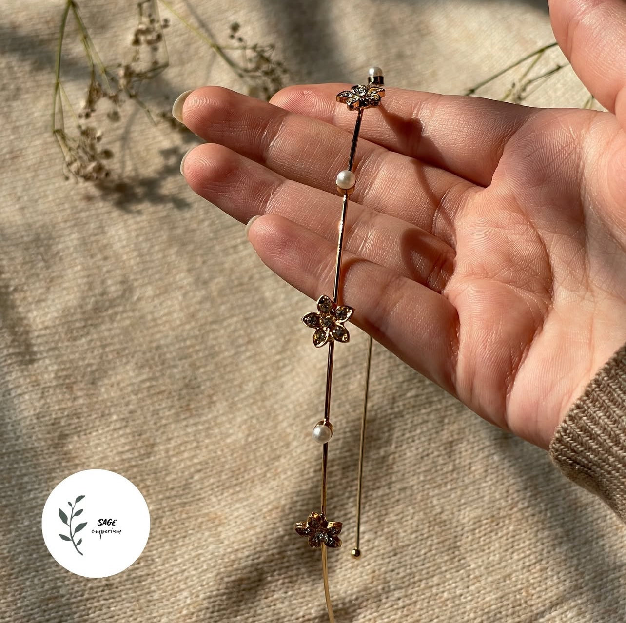 FAUX PEARL AND FLOWER HAIR BAND